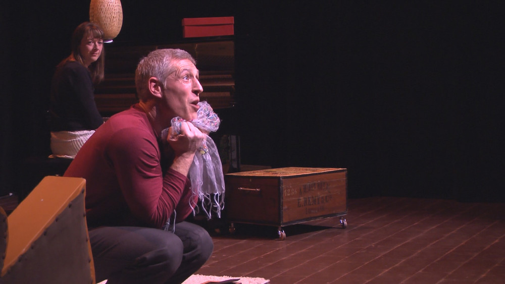 A droite, un extrait vidéo du spectacle filmée lors de sa présentation au Foyer Socio Culturel d'Antoing.