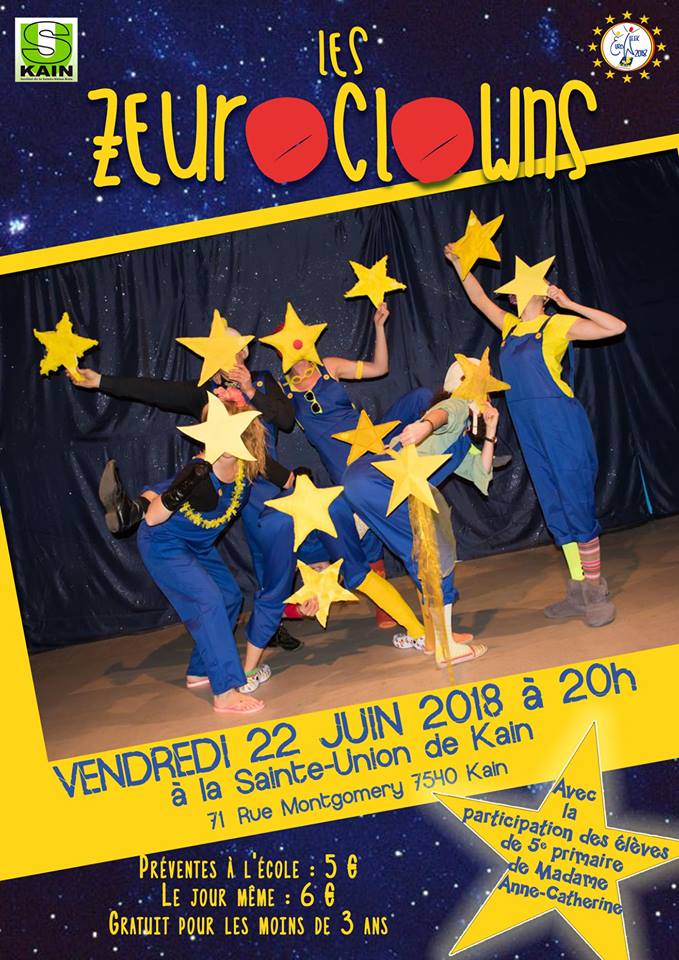 Stage de mime, théâtre et clown pour enfants février 2025 Atelier de clowns avec des enseignants. Atelier adultes 2014-2015. Stage clown du 9 mars 2019 Stage de clowns pour adultes. Stage d'improvisation théâtrale pour enfants. Atelier pour adolescents saison 2014-2015. Atelier adultes saison 2016-2017 Du mouvement vers le dessin et du dessin vers le clown. Stage 8-10 ans – clown : les mini-nez rouges à Anvaing Atelier de clowns avec des enseignants. Affiche réalisée par Marie Dumortier, enseignante à l'Institut de la Sainte-Union de Kain.